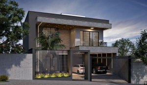 Fachada Moderna e Imponente: A primeira impressão conta, e esta casa se destaca com uma fachada contemporânea e imponente.